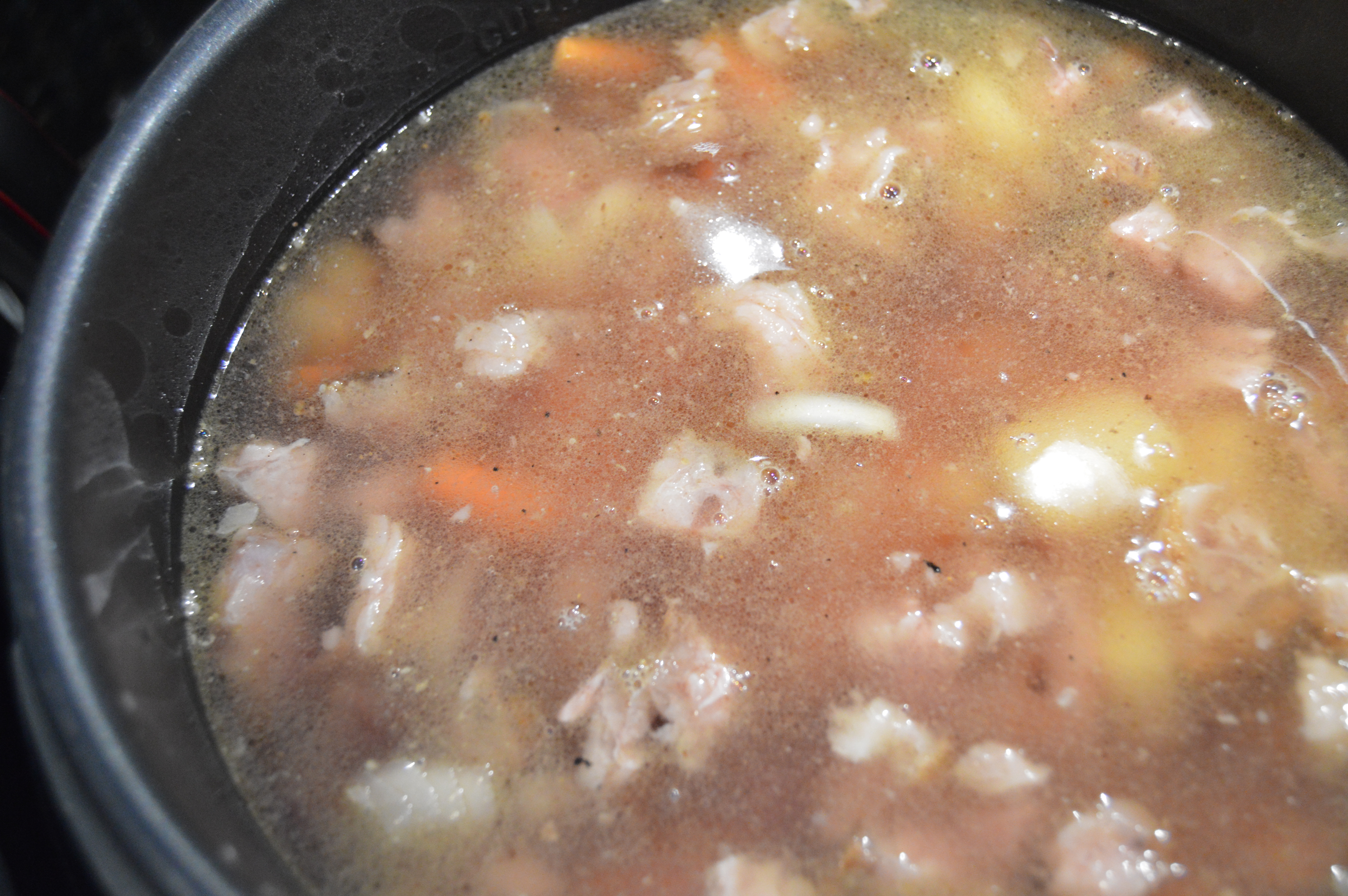 Depois que estiver tudo cozido, retire do fogo e acrescente a base de care, cortada em pedaços pequenos e mexa bem até derreter tudo.
