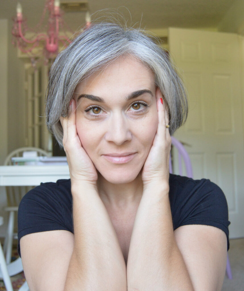 Eu assim, colorida, vestindo rugas e cabelos brancos, no meu mais feliz 40 anos!