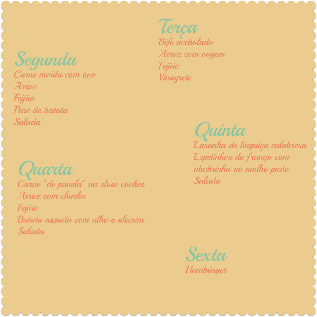 Assim, no final de semana, tento deixar o mais adiantado possível meu cardápio.