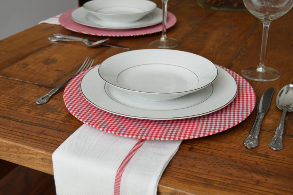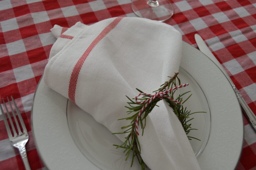 E, um dia, arrumando uma mesa para um almoço de domingo, pensei em usar uma toalha que tenho xadrez de vermelho e branco. E, na hora de colocar os guardanapos, vi que não tinha nenhum que combinasse com ela… Percebi que não tinha guardanapos brancos! Mas, na verdade, não queria guardanapos brancos, queria algo mais rústico.