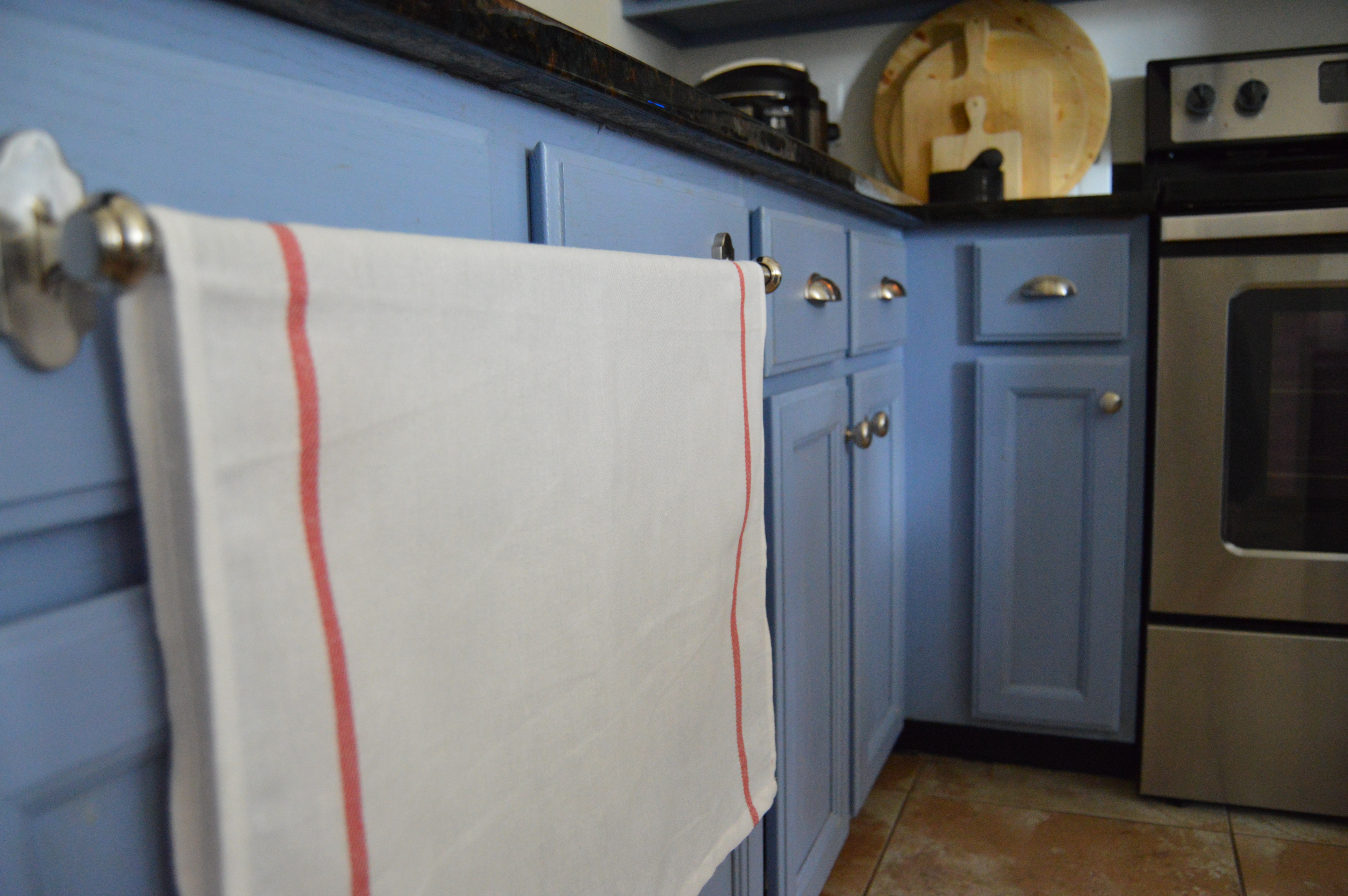Depois de alguns dias, quando fui comprar mais desses meus panos de prato que uso (são da IKEA e são super baratinhos – $0,79), olhando para eles pensei que ficariam lindos se fossem guardanapos e combinariam muito com esse estilo rústico e simples que eu estava procurando.