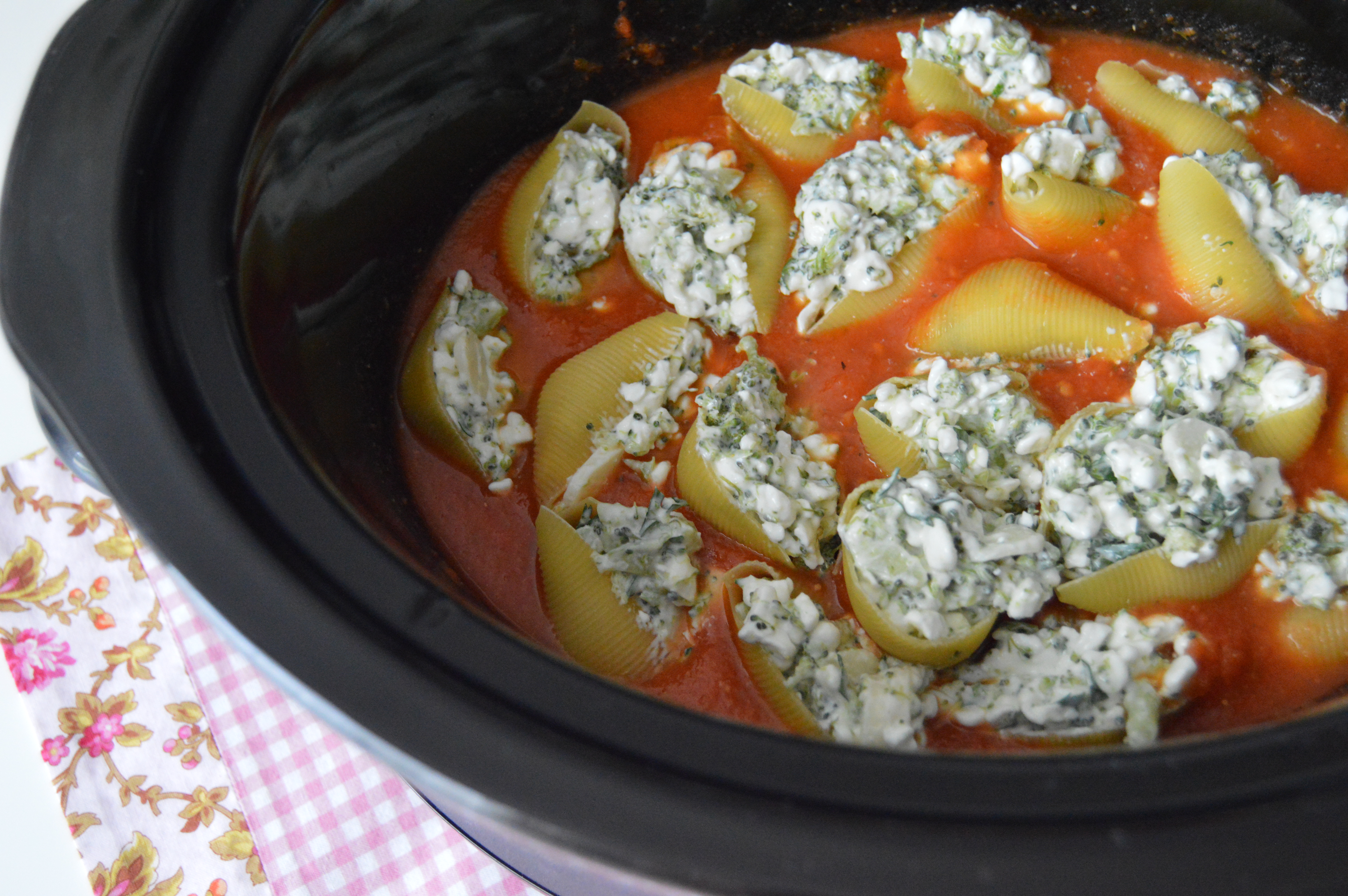 Conchiglione recheado com queijo e brócolis na Slow Cooker