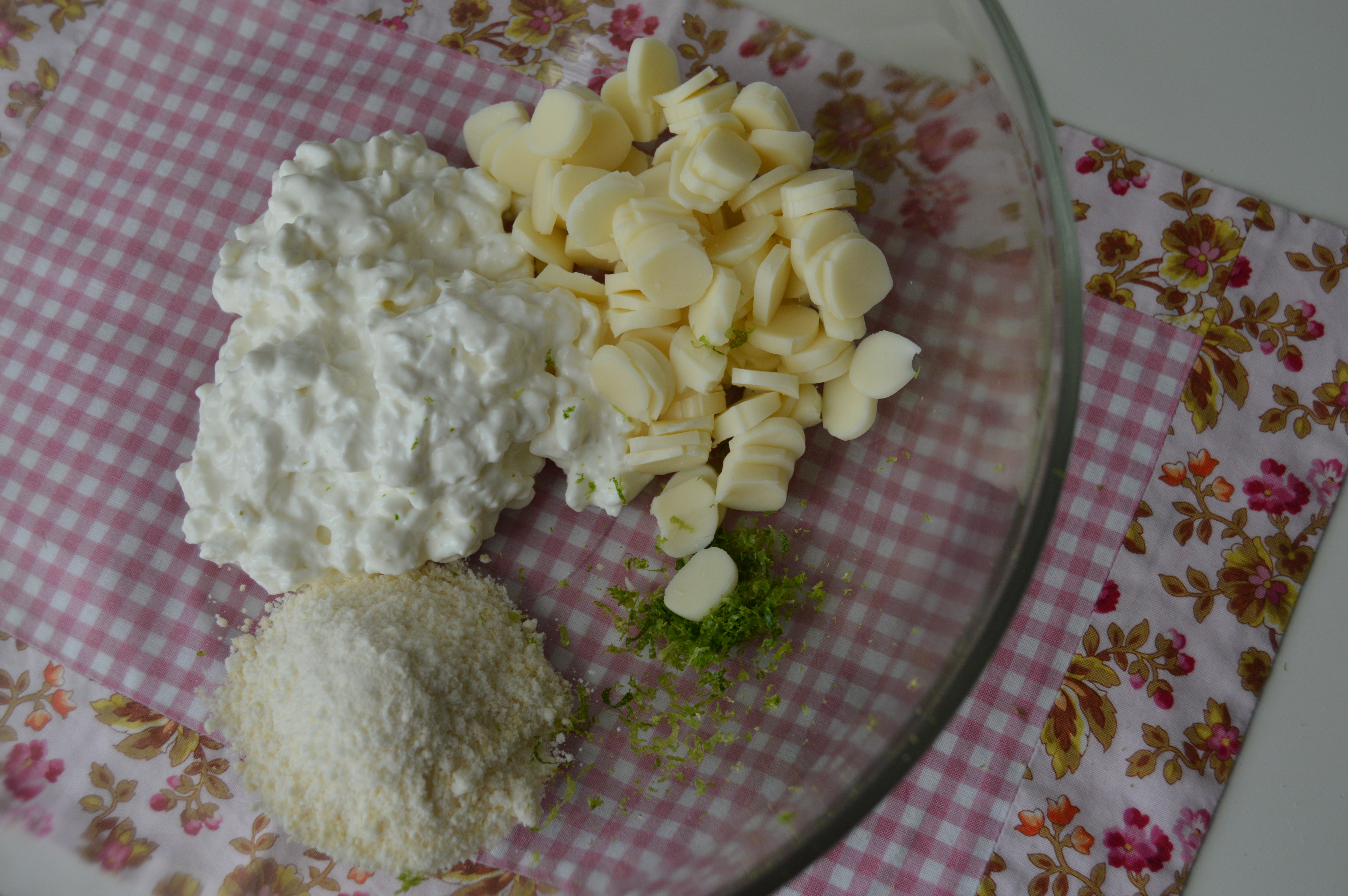 Em um refratário, acrescente o queijo cottage, metade da mussarella, o queijo parmesão e as raspinha de limão.