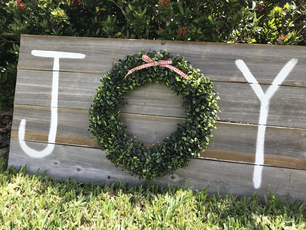 Pra esse projeto você vai utilizar madeira, tinta branca e uma guirlanda à sua escolha.