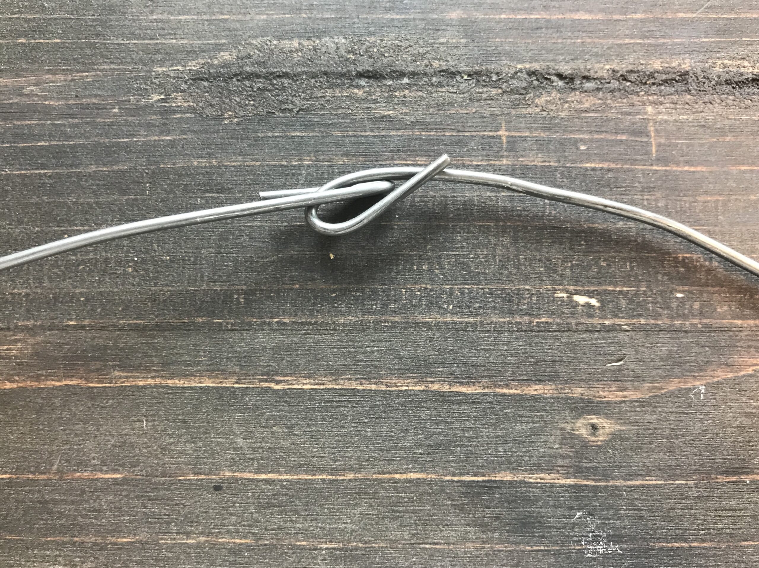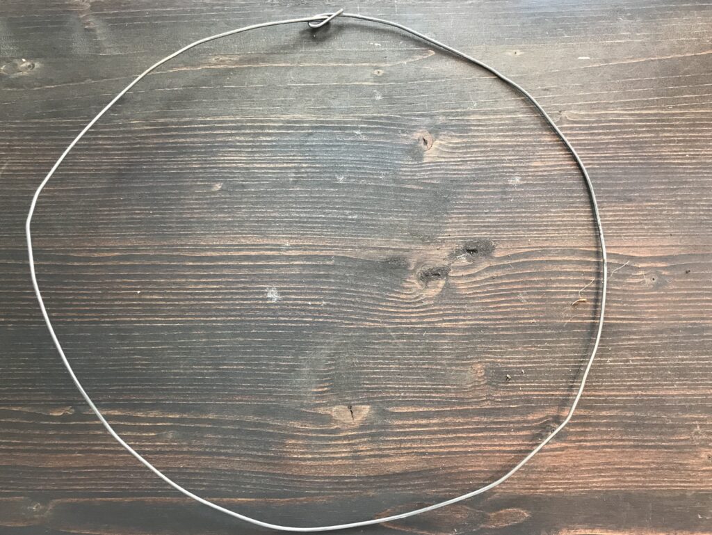 Estou usando esse cabide, para te dar uma sugestão de uso para algo que, às vezes, possa estar indo para o lixo. Mas, você pode usar um fio de arame mais grossinho. No caso do cabide, eu tirei esse plástico que reveste ele. Dei um formato circular e, com a ajuda de um alicate, fiz essa dobrinha para que se encaixassem para fechar.