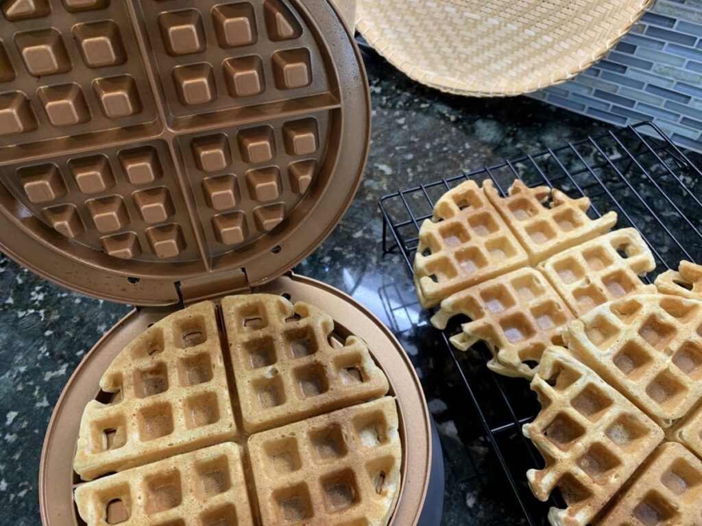 Coloque a massa na máquina de waffle e siga o tempo de preparo do seu fabricante.