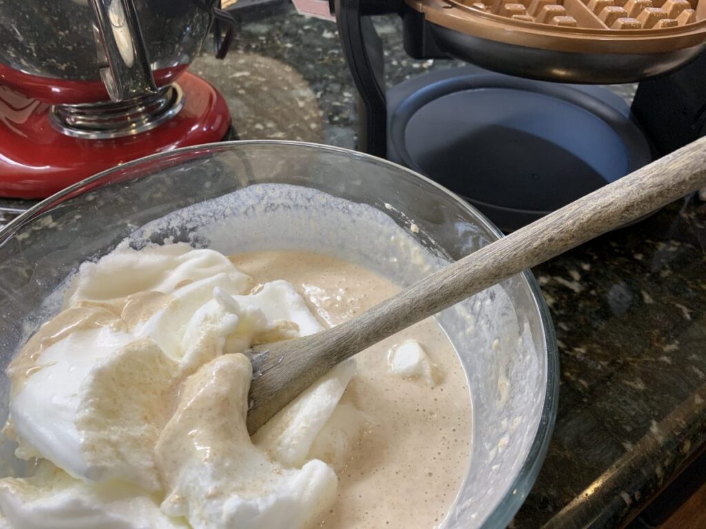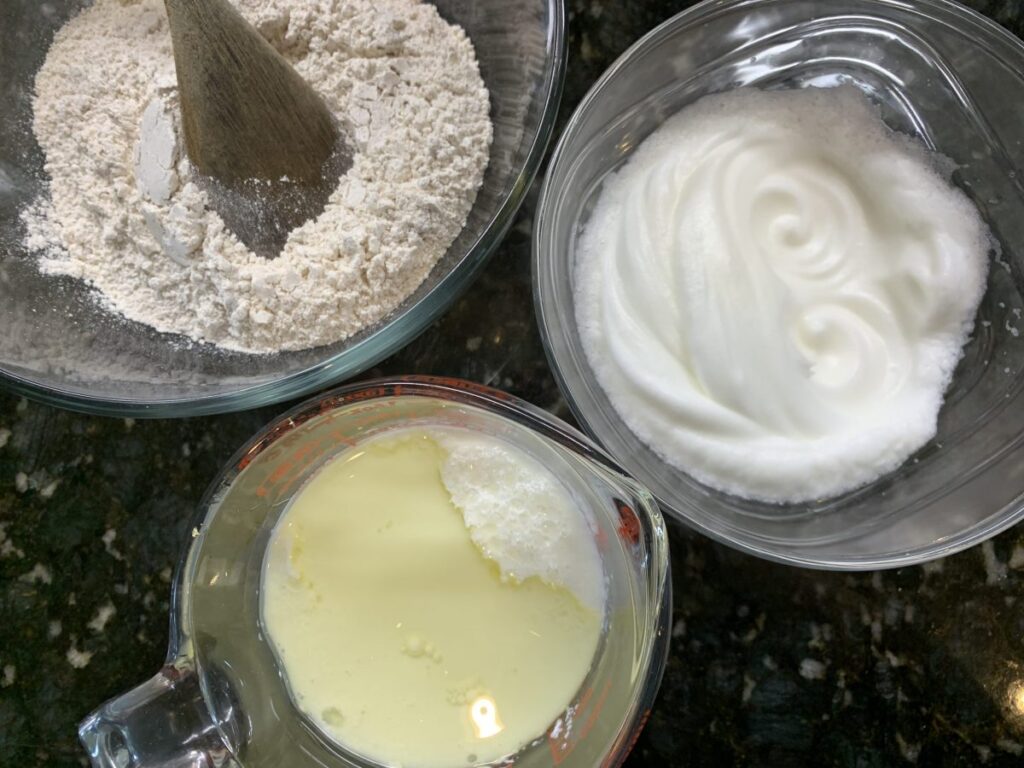 Bata as claras em neve e misture delicadamente à massa.