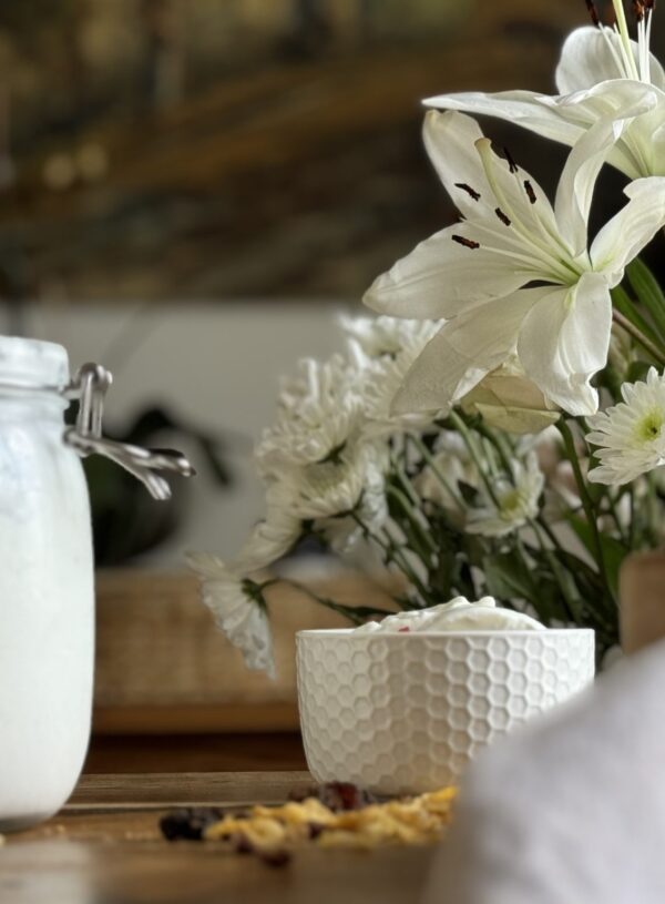 Iogurte de baunilha caseiro na panela de iogurte