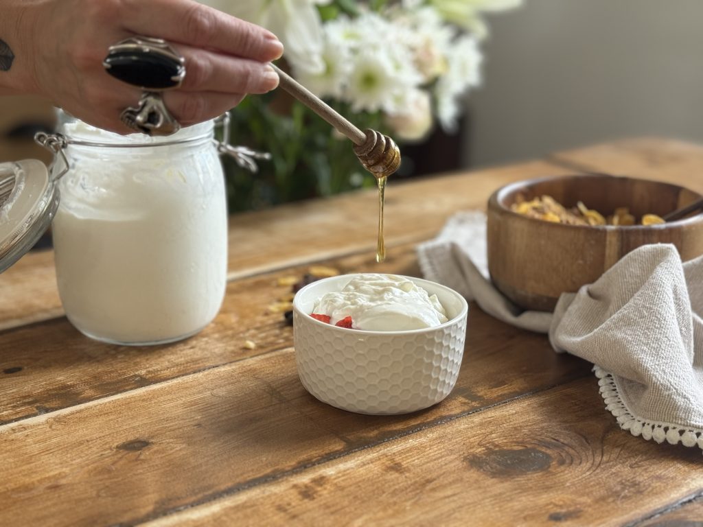Siga as instruções da sua panela e deixe por até 8 horas no processo de iogurte.