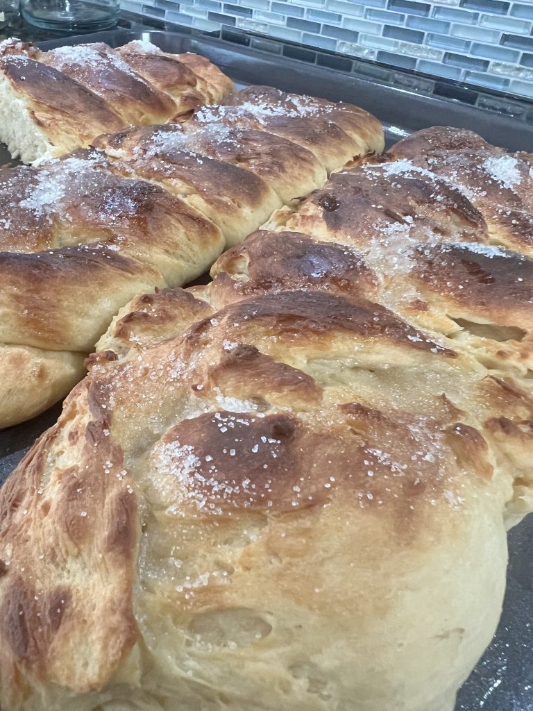 Depois da massa ter dobrado de volume, você pode moldar as roscas. Eu adoro fazer tranças!