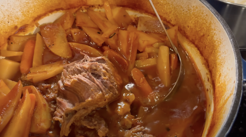 – 1,5Kg de carne (em pedaço e de sua escolha) *** Para quem mora no Brasil temos a opção do acém, e para quem mora aqui nos EUA, chuck roast ou shoulder são ótimas opções para preparar esse tipo de prato!