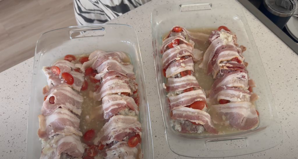 Depois cubra todo o lombo com as fatias de bacon, e por último regue com um fio de azeite.