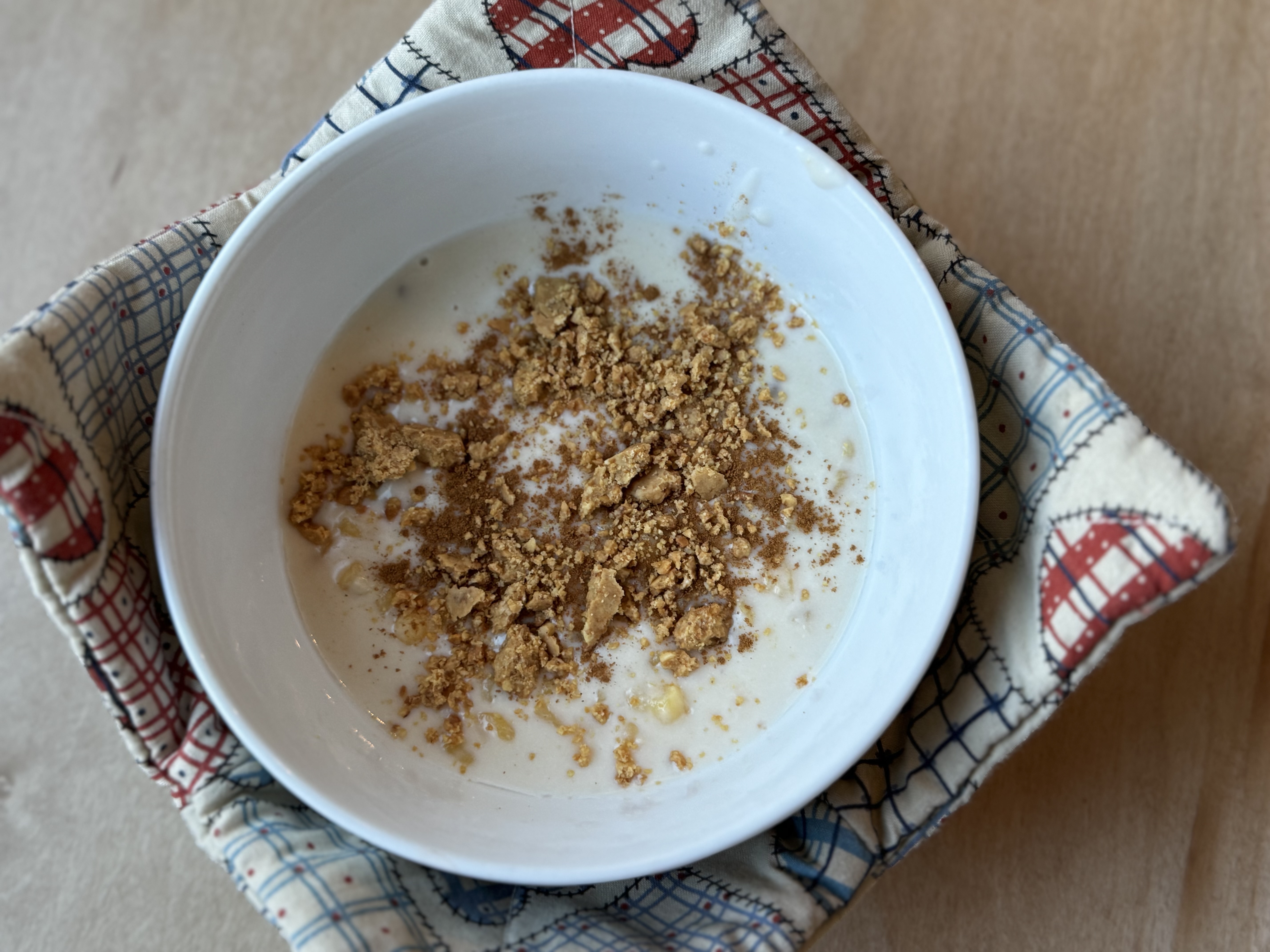Acerte o açúcar e sirva polvilhando canela e esfarelando um pouco de paquinha para um sabor ainda mais especial!