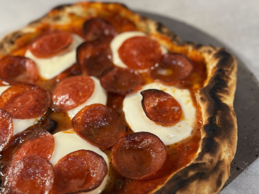 A favorita do Bill é sempre Peperoni! Tambem colocoamos muçarela fresca e molho de tomate. Ficou deliciosa também!
