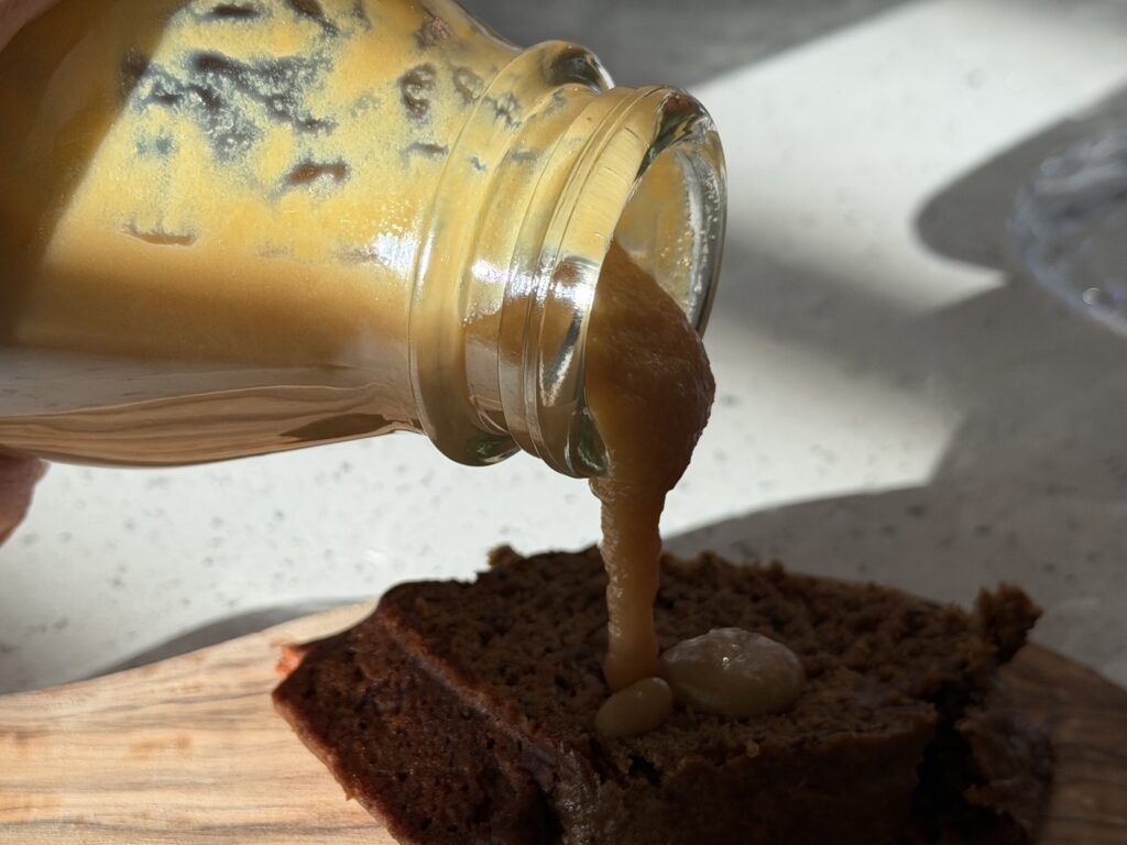 Na primeira mordida do meu pãozinho tostado com a caldinha, na hora pensei: “Bolo de ameixa com caldinha de doce de leite!”